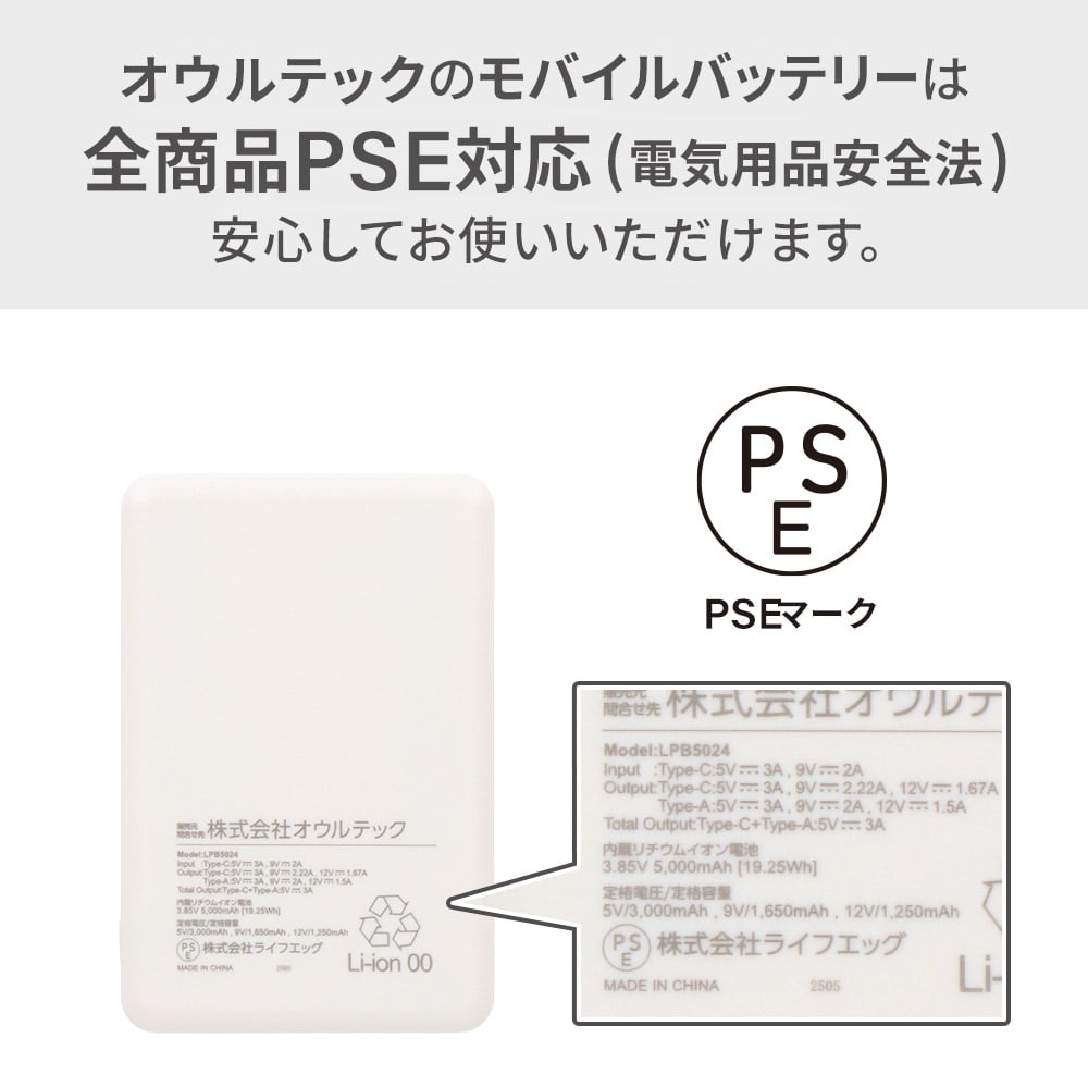 USB Type-C:5V/3A、9V/2.22A、12V/1.67A USB Type-A:5V/3A、9V/2A、12V/1.5A USB Type-C+Type-A:5V/3A(合計最大出力) ※接続端末の性能により供給する電流値は異なります。 ※USB PD充電を行う場合は、PD対応の機器やケーブルをご使用ください。