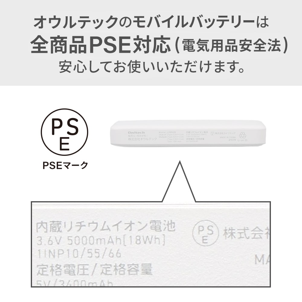 モバイルバッテリー 5000mAh ホワイト 最大12W入出力対応 USB Type-C入出力/USB Type-A出力