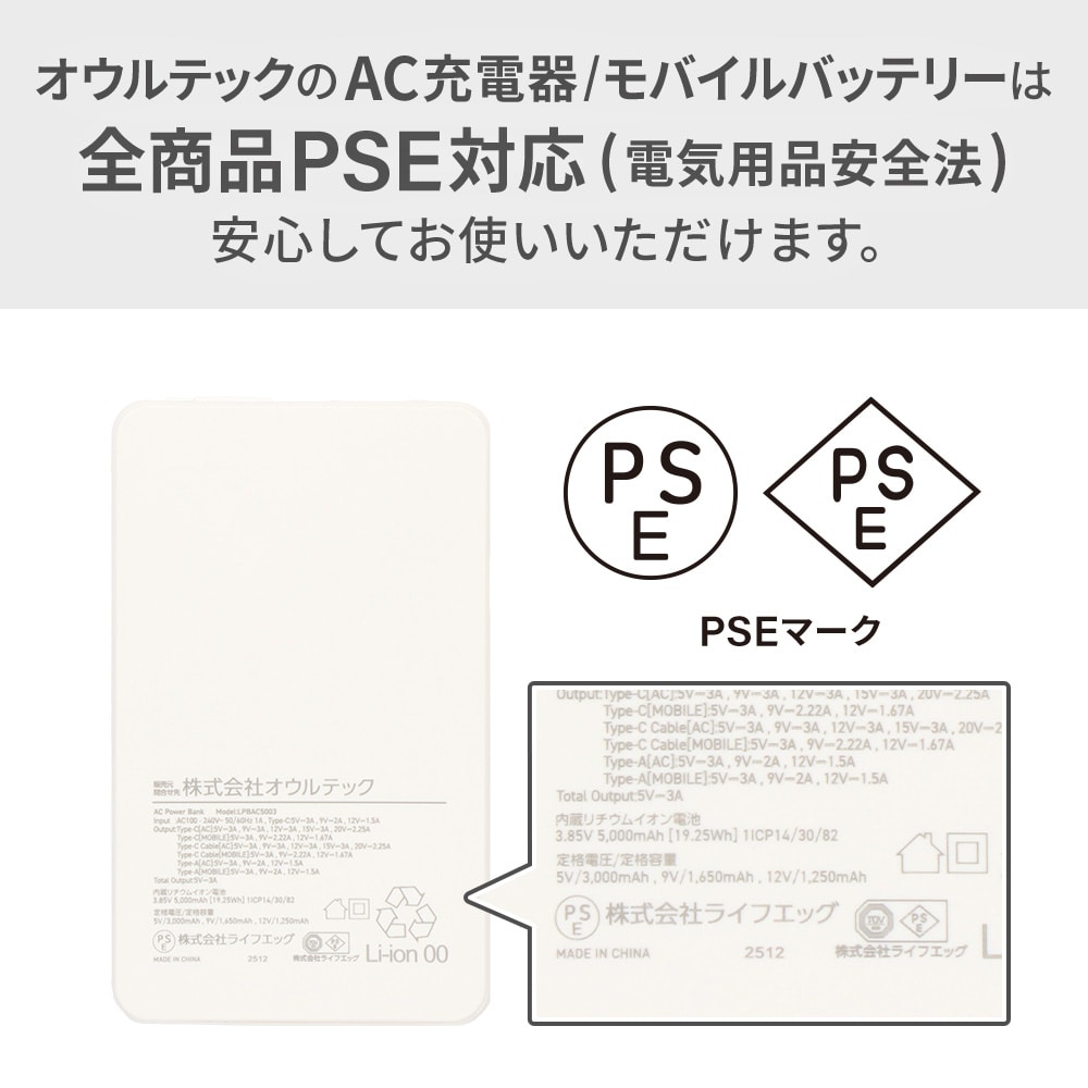 USB Type-C-AC:5V/3A、9V/3A、12V/3A、15V/3A、20V/2.25A USB Type-C-MOBILE:5V/3A、9V/2.22A、12V/1.67A USB Type-C-Cable-AC:5V/3A、9V/3A、12V/3A、15V/3A、20V/2.25A USB Type-C-Cable-MOBILE:5V/3A、9V/2.22A、12V/1.67A USB Type-A-AC:5V/3A、9V/2A、12V/1.5A USB Type-A-MOBILE:5V/3A、9V/2A、12V/1.5A 5V/3A(合計最大出力)