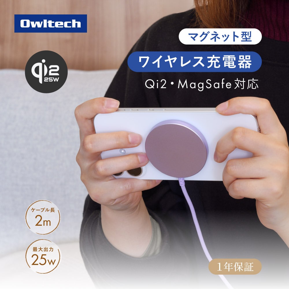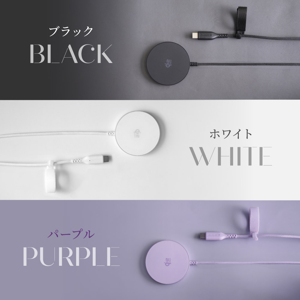 ケーブル一体型ワイヤレス充電器 パープル Qi2認証取得 Qi2.2対応 最大25W