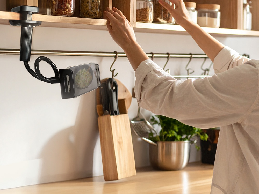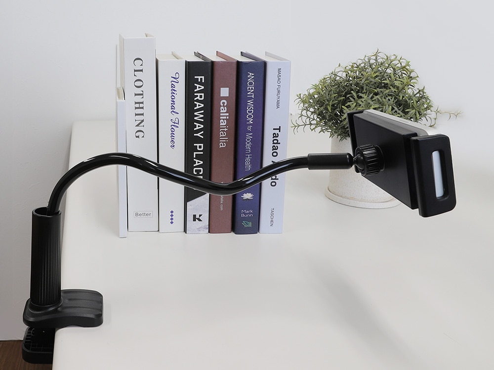 ※反時計回りに軸を回して緩めたら、クランプを上げて挟んでください。