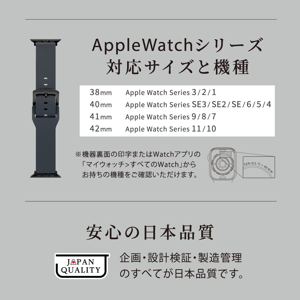 ※42mmサイズの、Apple Watch Series 3、Apple Watch Series 2、Apple Watch Series 1には非対応です。