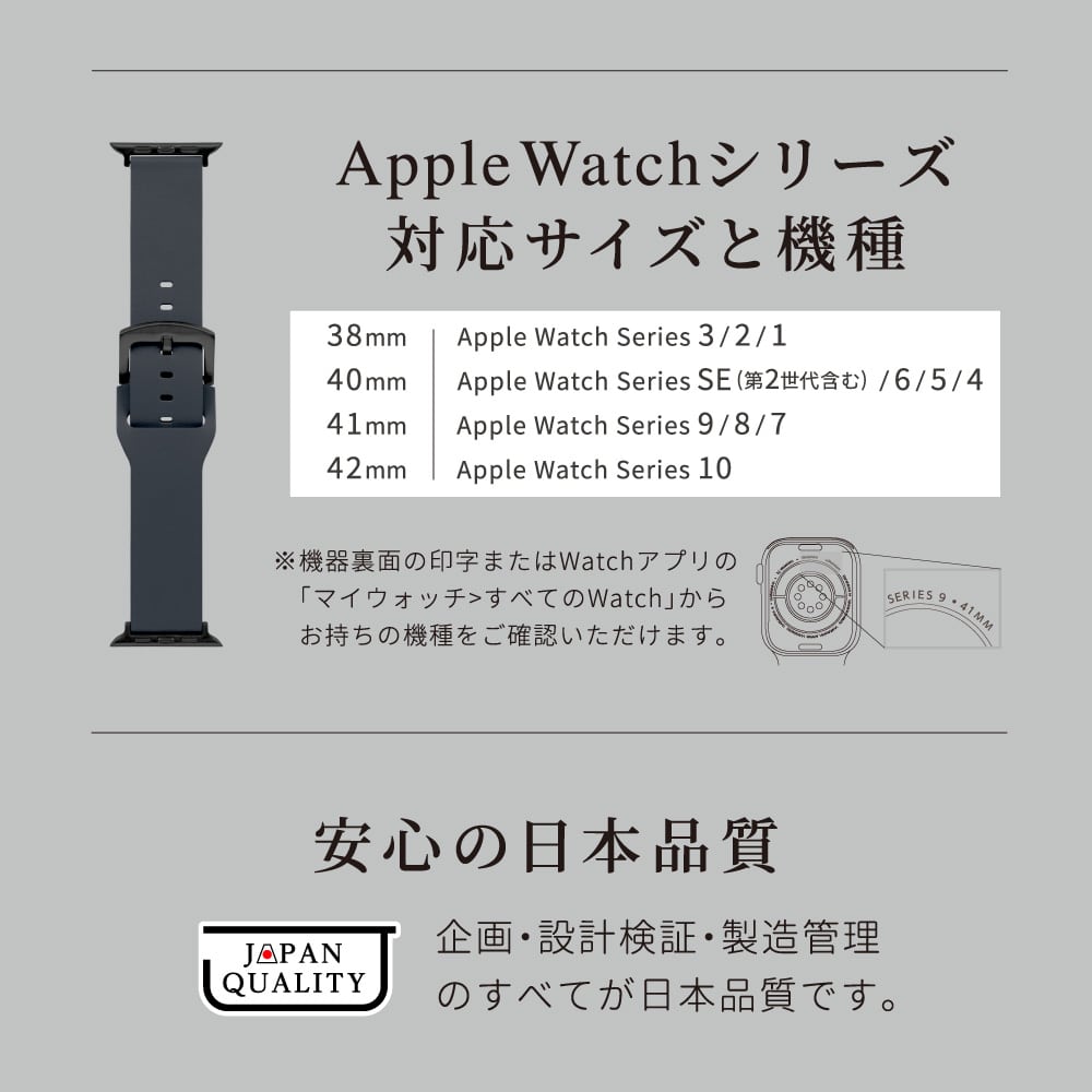 ※42mmサイズの、Apple Watch Series 3、Apple Watch Series 2、Apple Watch Series 1には非対応です。