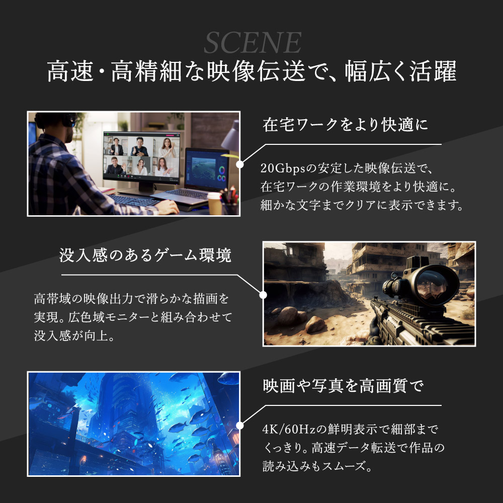 高速転送 USB Type-C to USB Type-Cケーブル 2m 最大20Gbps/PD240W充電