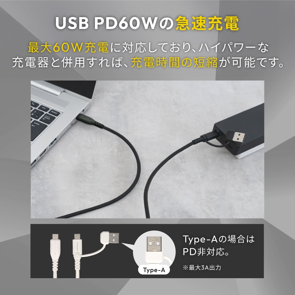 ・USB PD60W充電に対応(USB Type-C to Cのみ)