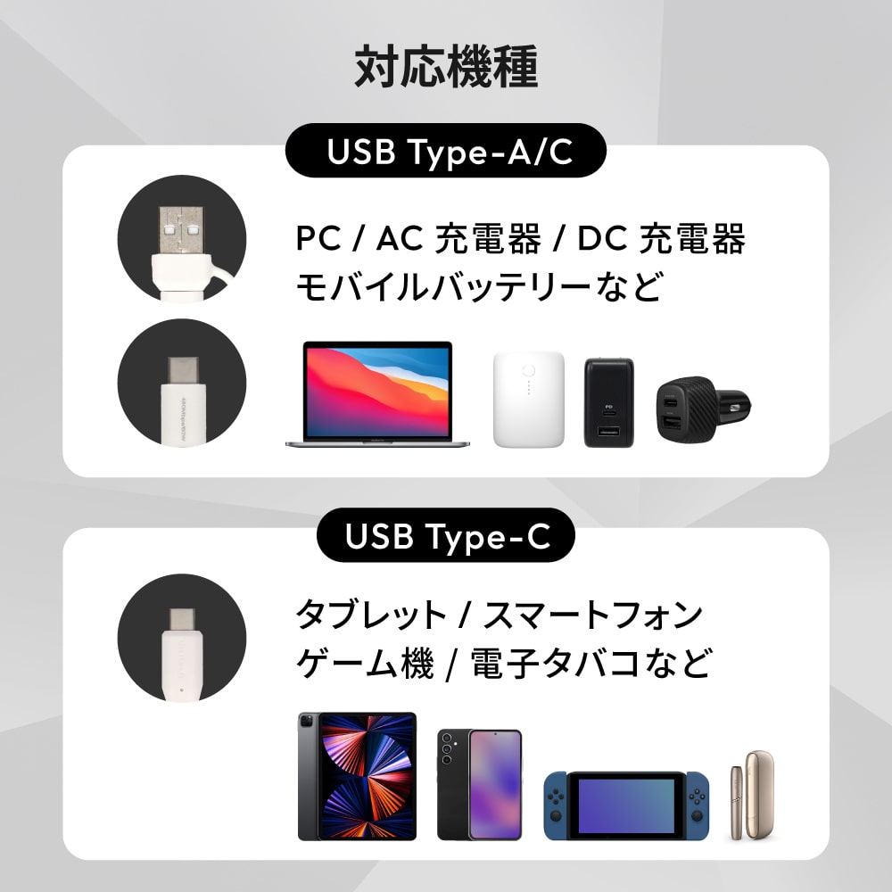 ※USB PDで充電を行う場合は、端末や充電器がPD対応であるかをご確認ください。(USB Type-C - USB Type-C使用時)