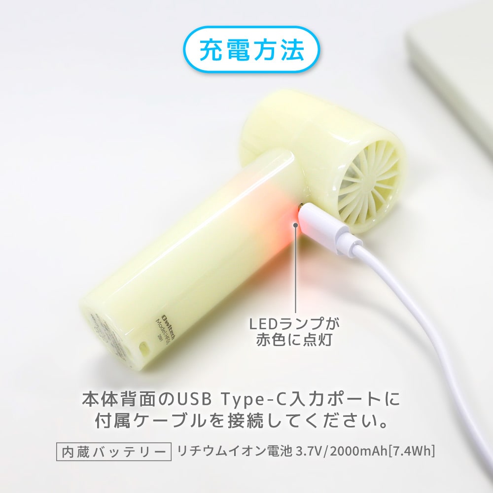 ファン連続動作時間満充電時:約 1.5時間(風量:強)~約 9時間(風量:弱)