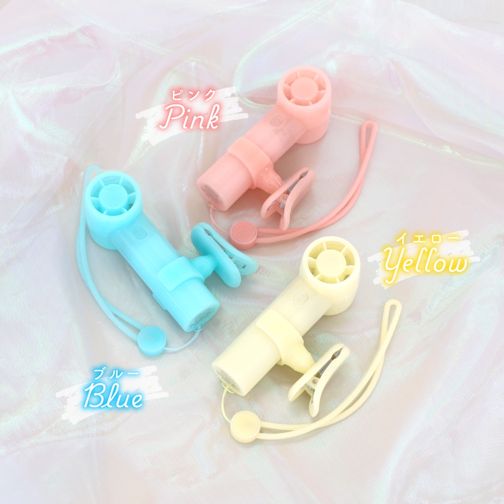 ジェットハンディファン 日傘用クリップ付き ブルー パワフルな風 3段階風量調節・約9時間使用可能