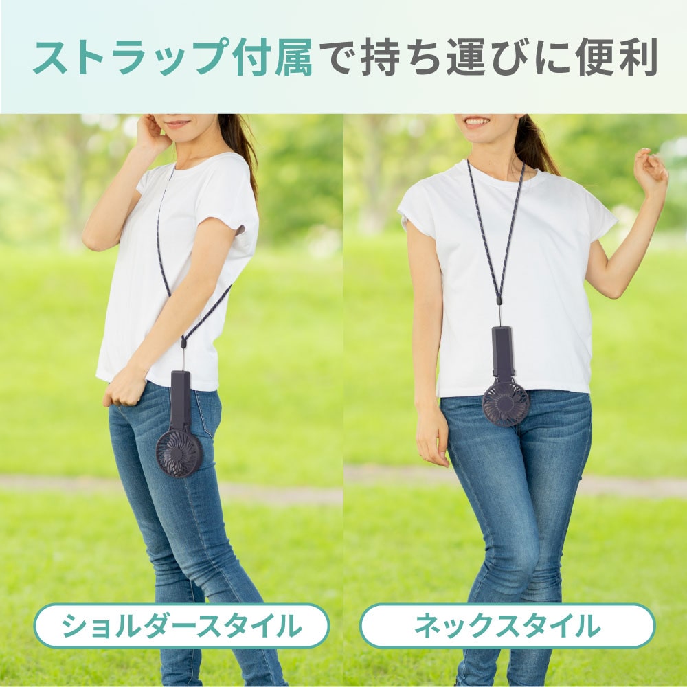 ポータブルファン モバイルバッテリー機能搭載 5段階風量調節 約20時間使用可能 しっかりとした風 おやすみモード搭載 ネイビー