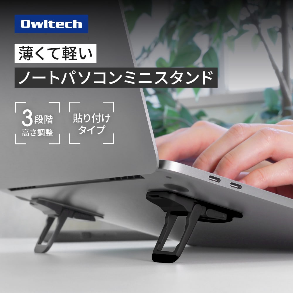 ノートパソコンミニスタンド ブラック 3段階高さ調整可能 貼り付けるだけ