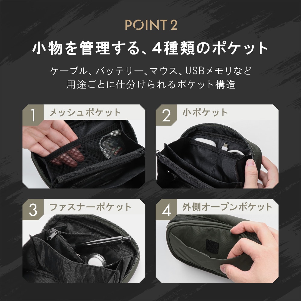 ・小物の整理が捗る複数ポケット