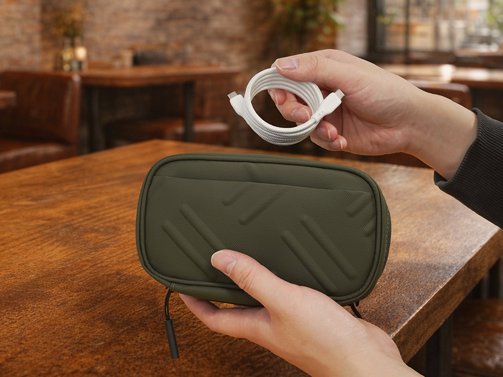 商品特長・180度パノラマオープン設計のガジェットポーチ