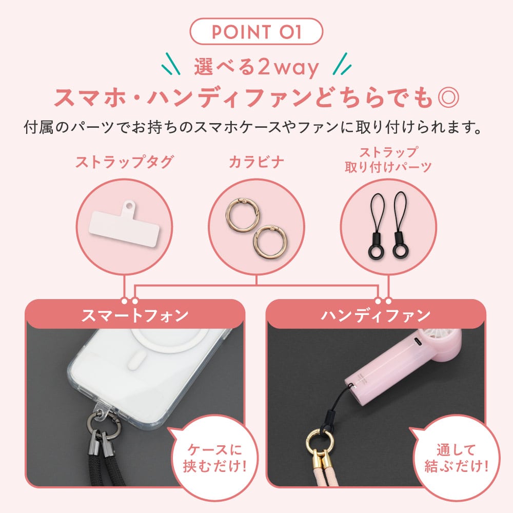 2WAYショルダーストラップ ピンク ハンディファンにもスマートフォンにも!
