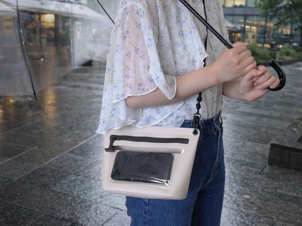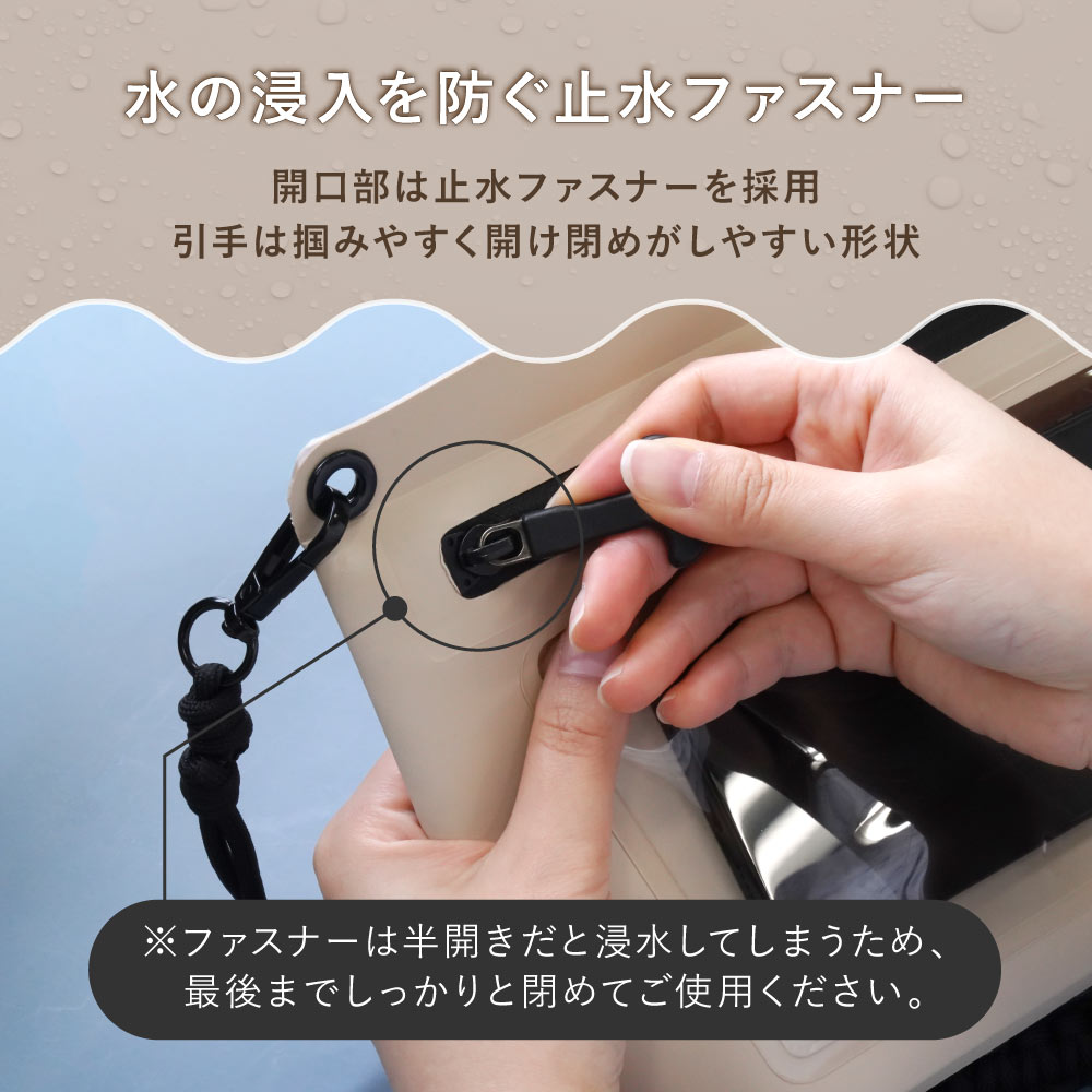 中の空気を抜くようにファスナーを閉じると、スマートフォン画面の操作がしやすくなります。