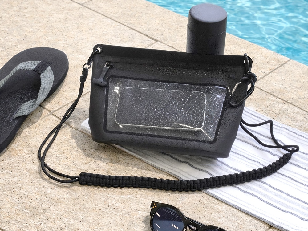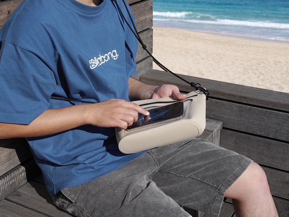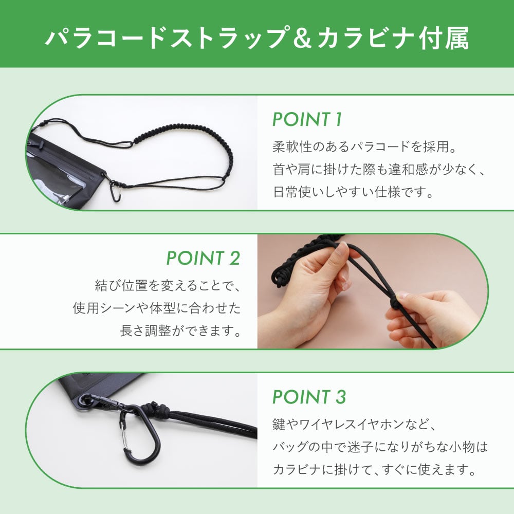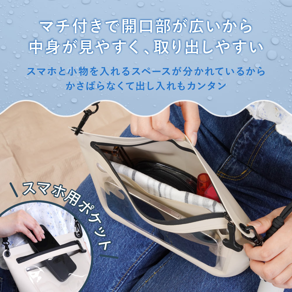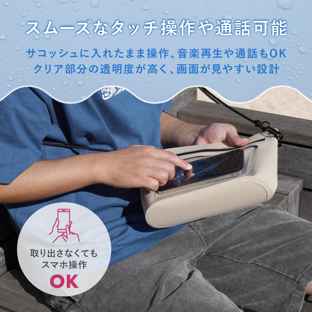 中の空気を抜くようにファスナーを閉じると、スマートフォン画面の操作がしやすくなります。