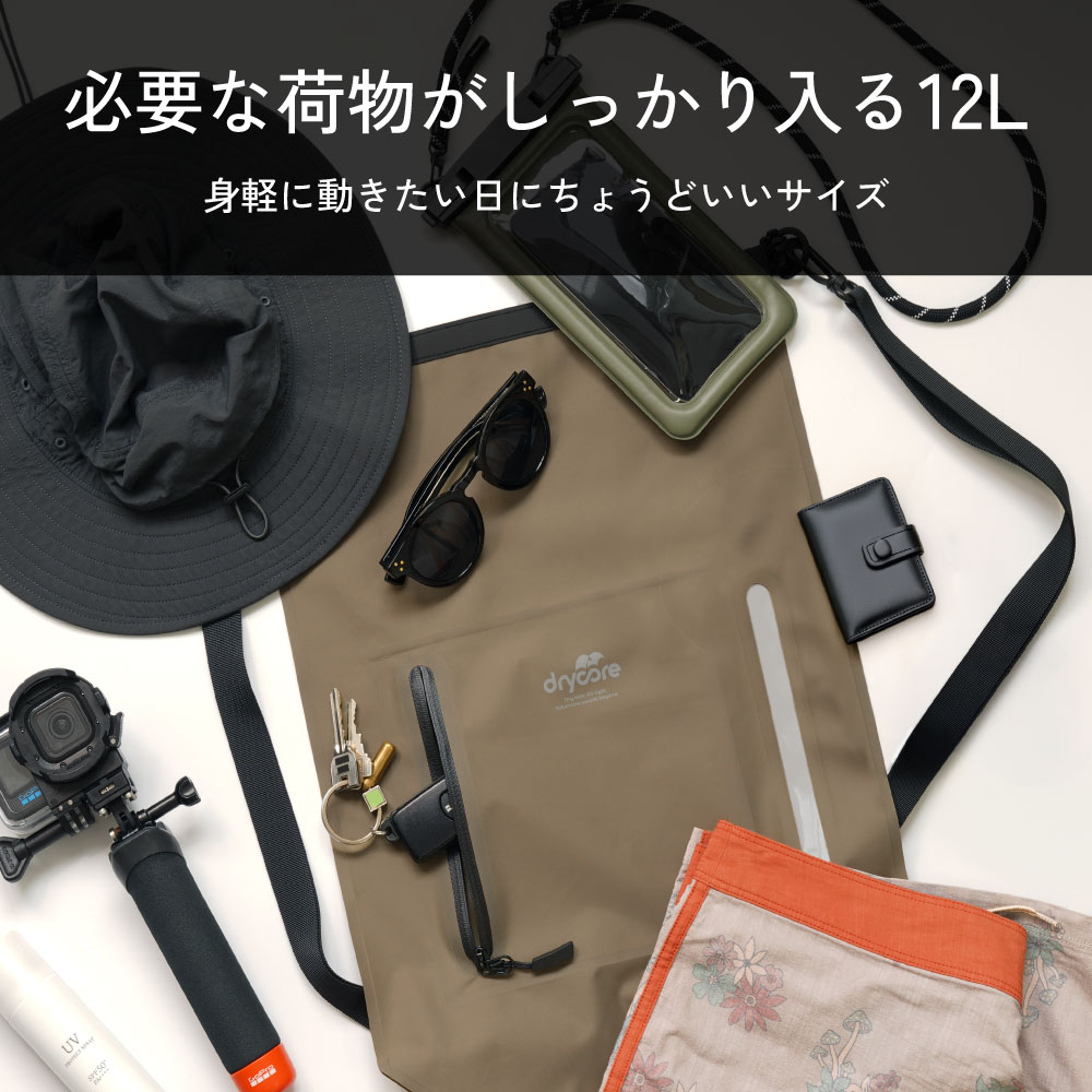 3Way(手提げ/肩掛け/ナップサック)で使える 防水ドライバッグ ブラック 12L IPX4準拠
