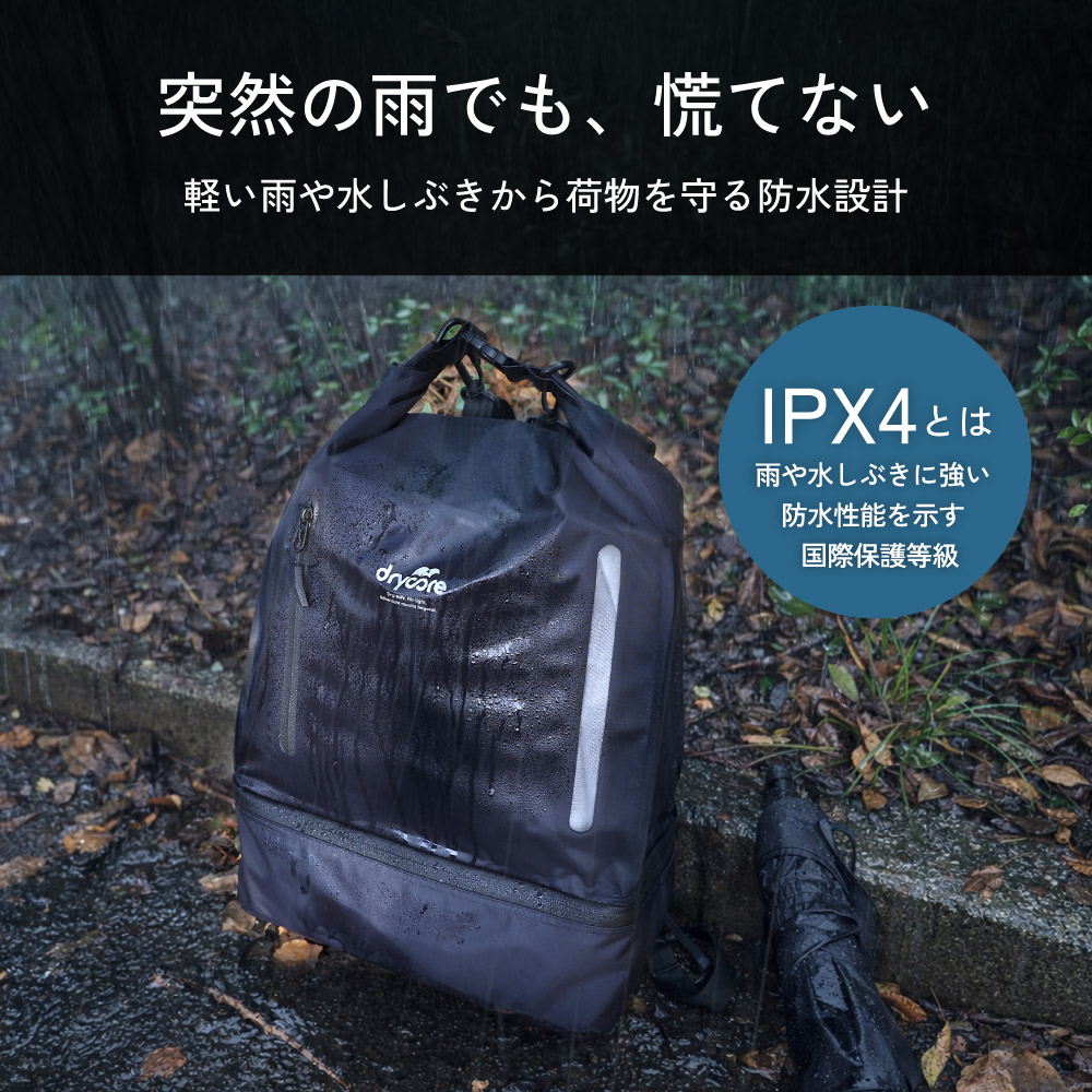 ・突然の雨にも安心のIPX4防水性能