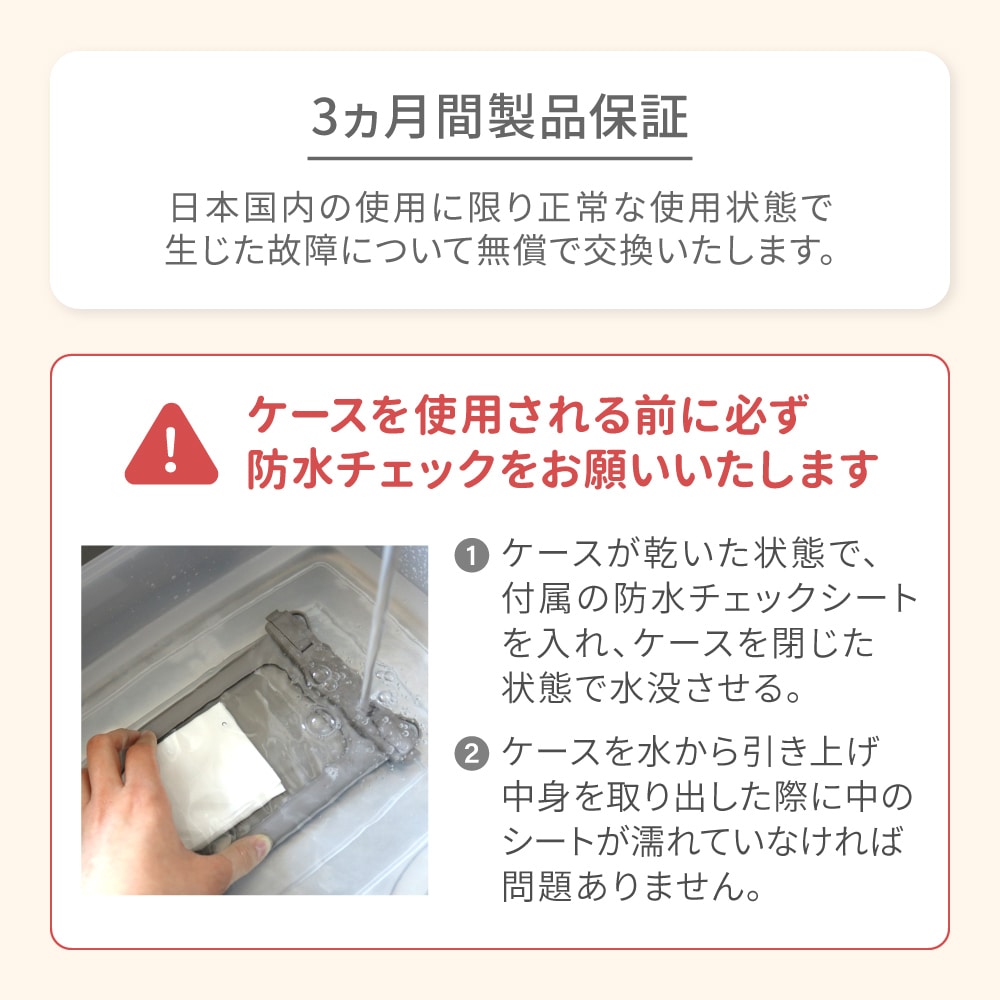 ※初回使用時および毎回の使用前に、必ず「防水チェック」を行ってください。防水チェック方法などの詳細は本製品に封入されている説明書をお読みください。