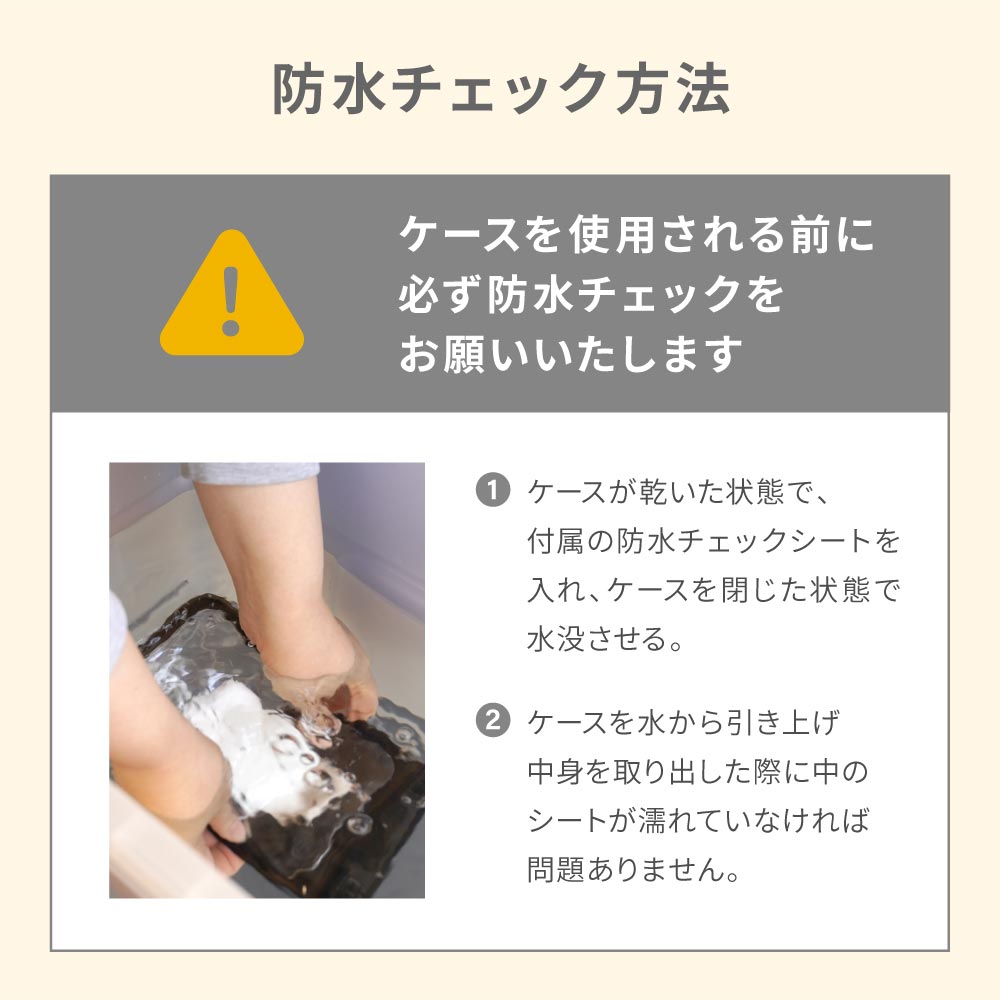 ※初回使用時および毎回の使用前には必ず「防水チェック」を行ってください。「防水チェック」確認方法や取り扱いについての詳細は本製品の台紙内側をお読みください。