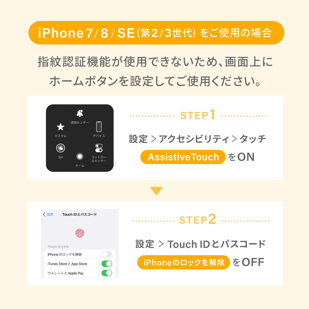 そのため「AssistiveTouch機能」を有効にして、画面上にホームボタンを設定してからご使用ください。