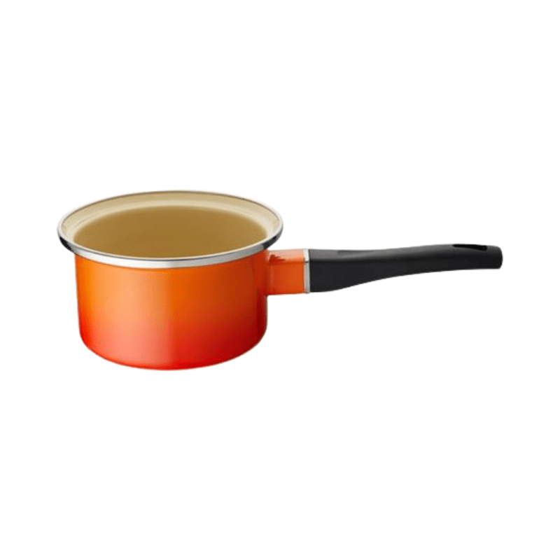 人間工学に基づいて設計された握りやすいロングハンドルで熱くなりにくく、鋳物ホーローウェアと比べて軽いため、手軽にお使いいただけます。