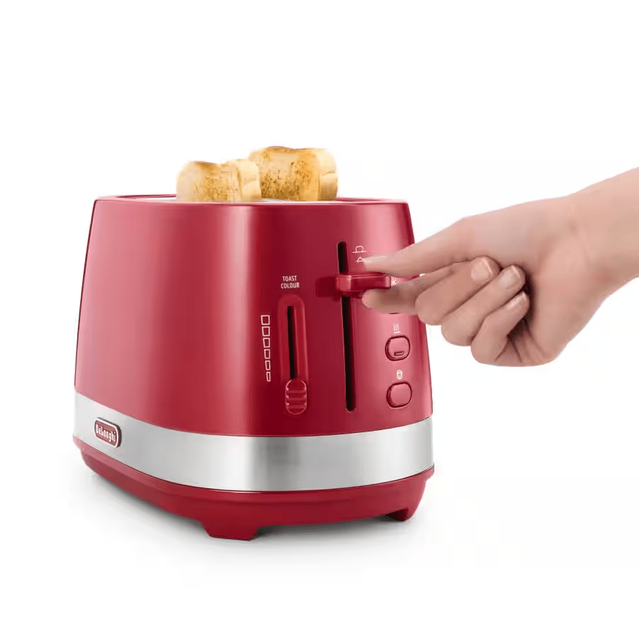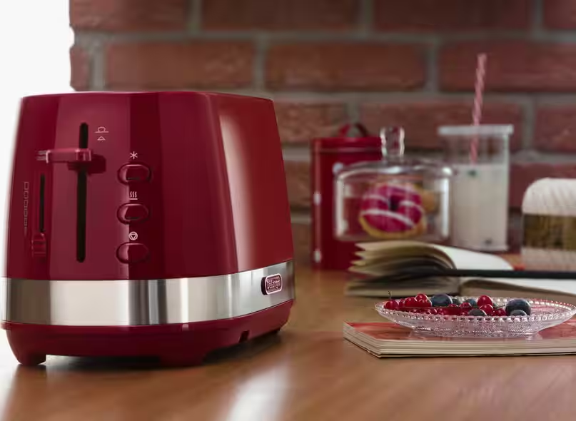 光沢のあるプラスチックボディーと、それを囲う大胆なステンレスリング。コントラストそのものが美しく、シンプルながら、他にはないデザインを実現したアクティブシリーズのポップアップトースター。外はこんがり、中はふわふわの美味しいトーストが焼けます。