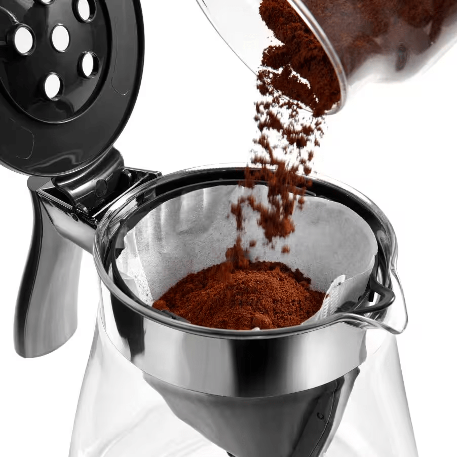 砂時計のように優美さと軽やかさを伝える独創的な外観デザインを実現。 品質のプロが認めた「アイスコーヒーモード」搭載の革新的ドリップコーヒーメーカー。