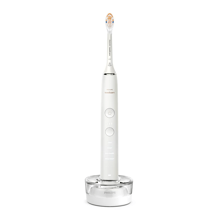 ダイヤモンドクリーン 9000 には、クリーン(基本のブラッシングモード)、ホワイトプラス(ステインを落とし磨き上げる)、ガムヘルス(歯垢を落とし、歯ぐきにやさしい刺激を)、ディープクリーンプラス(心地よい振動で歯垢をしっかり除去)のモードが搭載されており、さまざまなブラッシングのニーズに対応します。ブラッシングの強さ設定も弱、中、強の 3 段階からお選びいただけます。