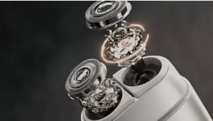 ヒゲを根元から引き上げて、肌の下-0.08mmの深剃りへ。 薄くなった外刃*と、スーパーリフト&カットテクノロジーにより、やさしく、しっかり深剃り。1枚目のリフト刃がヒゲを引き上げ、2枚目のカット刃が深剃りカット。 合計48枚の回転刃は色々な方向に生えているヒゲを効率的に取り込み、しっかり深剃りします。