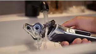 シェーバーを簡単にお手入れ。ボタン 1 つでシェーバーヘッドが開き、水洗いできます。