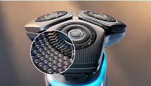 当社の回転式シェーバーは、独自設計によりヒゲの伸びに合わせて、360 度回転式ブレードが全方向をカットするため、あらゆる方向のヒゲをとらえます。1 分間に最大 15 万回カットするデュアル SteelPrecision ブレードは、1 回のストロークでより多くの毛をカットします**