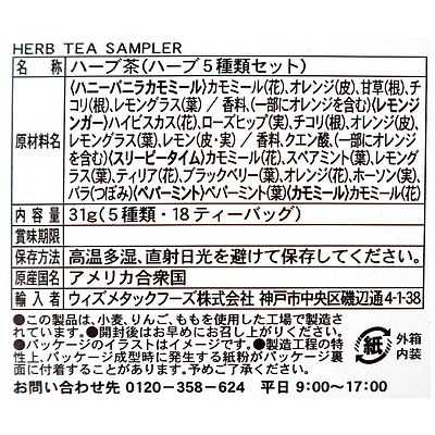 スリーピータイム、レモンジンガー、ハニーバニラカモミール、カモミールペパーミントの5種類がお楽しみいただけるアソートです。