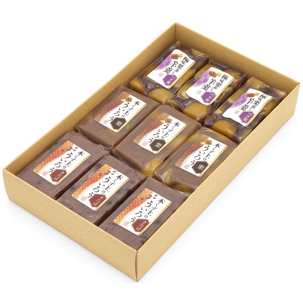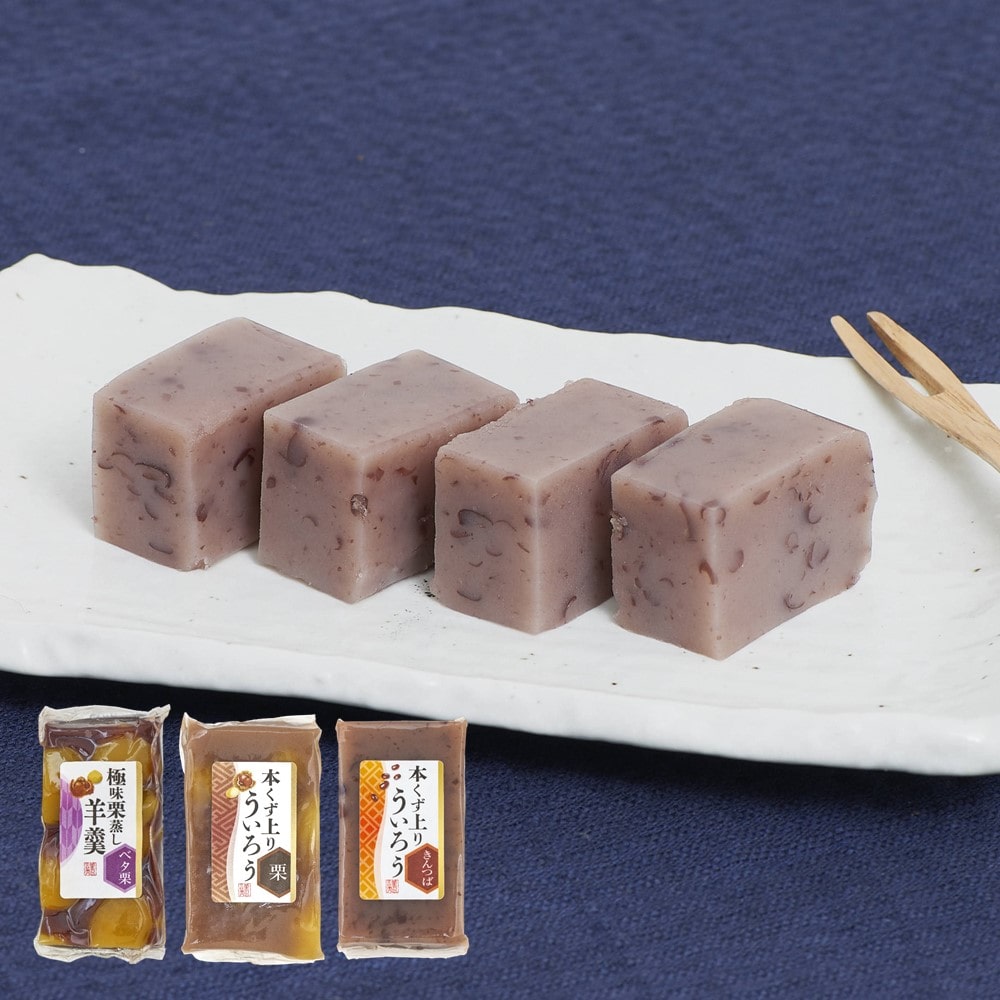 栗蒸し羊羹、栗ういろう、きんつばういろうが各3個ずつ入った詰合せです。