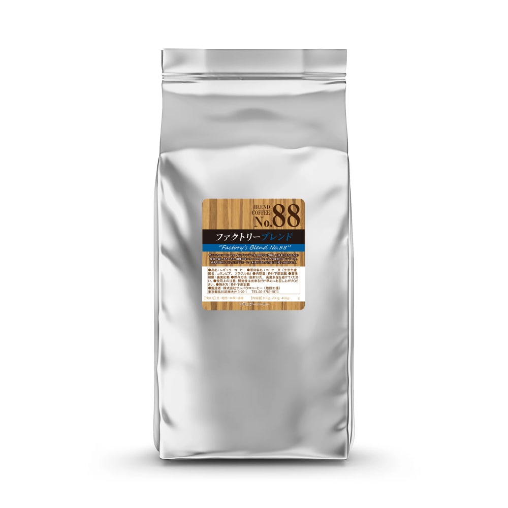 のちに店頭で焙煎豆を小売りするようになりました。当時はブレンドの種類が36種類ありましたが、その中でもひときわ多くのお客様に喜ばれたのがこの Factory Blend No.88 です。ヨーロッパコーヒーミッションでの経験や、育んできた焙煎技術の全てを注ぎ込んで結晶化させ、現在でもレジェンドブレンドとして愛されています。