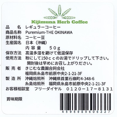 | 商品内容 | きじむなファーム 100%沖縄産コーヒー豆 中煎り50g |