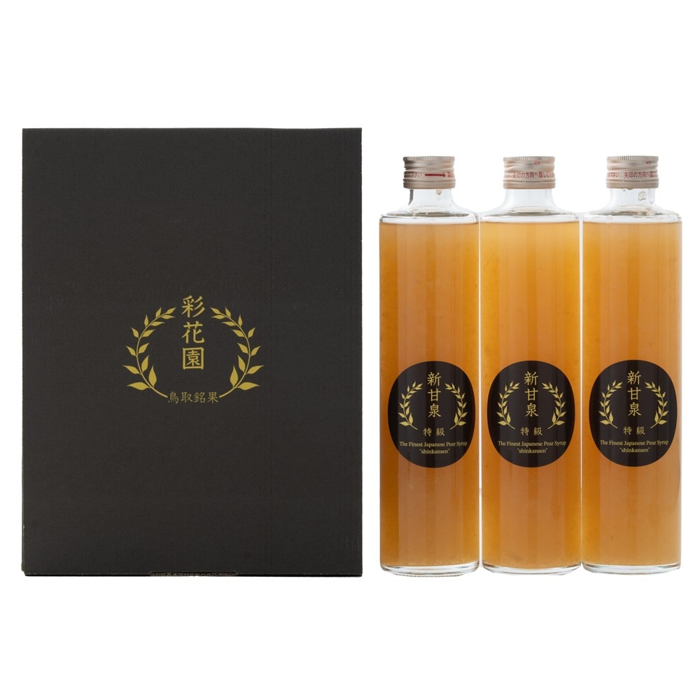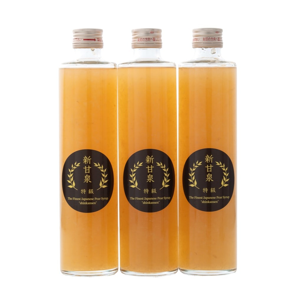 鳥取県のオリジナル梨『新甘泉』を使用した梨シロップです。炭酸水やアルコールなどには3~4倍に希釈してお召し上がりください。