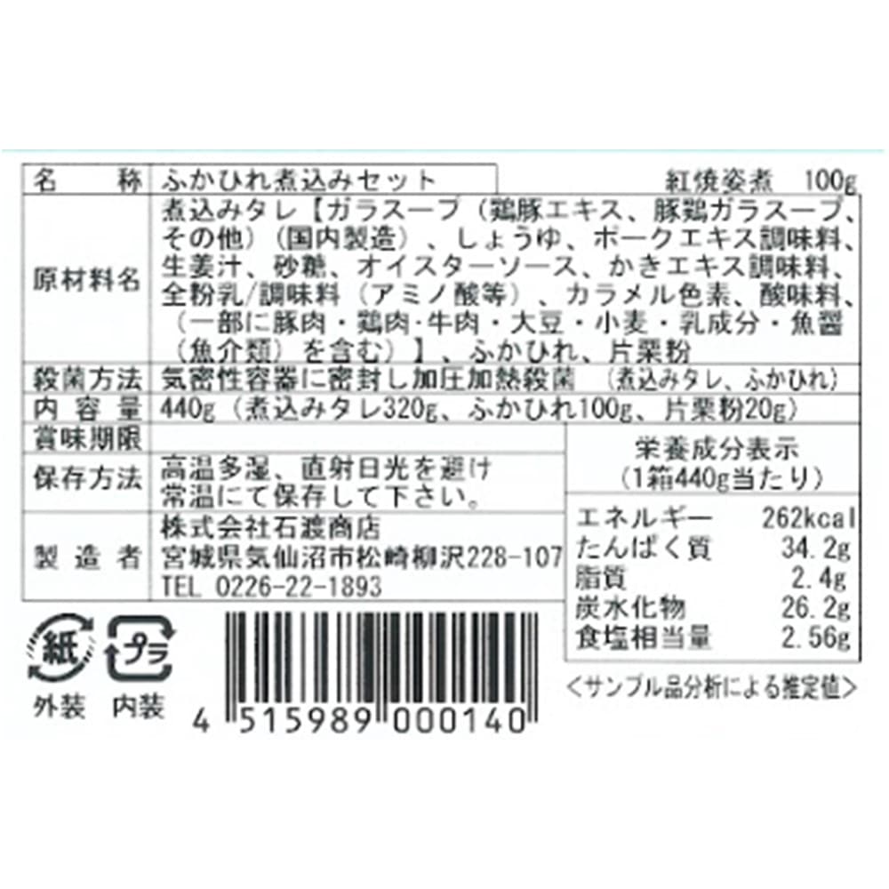 | 商品内容 | ふかひれ100g、煮込みタレ320g、片栗粉20g |
