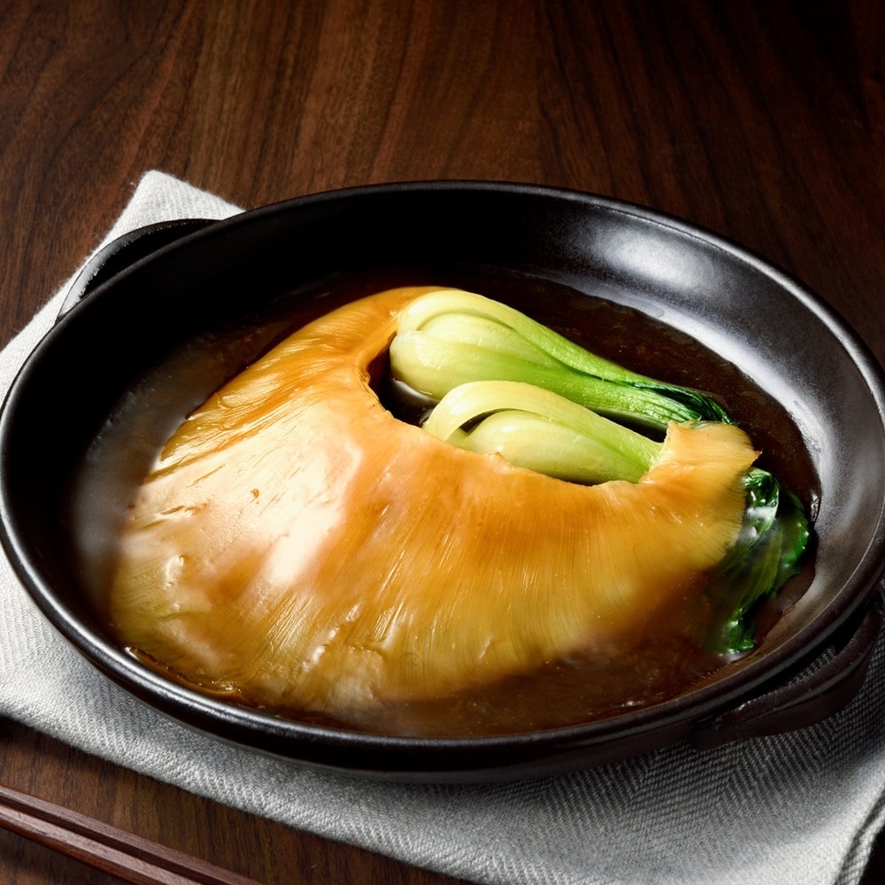 下処理を丁寧に行いじっくりと蒸し上げた姿煮です。煮込み用のタレは数種類のガラスープで仕上げています。