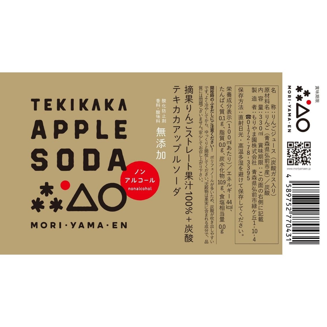 摘果りんご果汁100%で作ったテキカカアップルソーダは、摘果りんご由来のサッパリとした酸が特徴的で、甘さ控えめなためお食事とともに楽しむドリンクとしてもおすすめです。