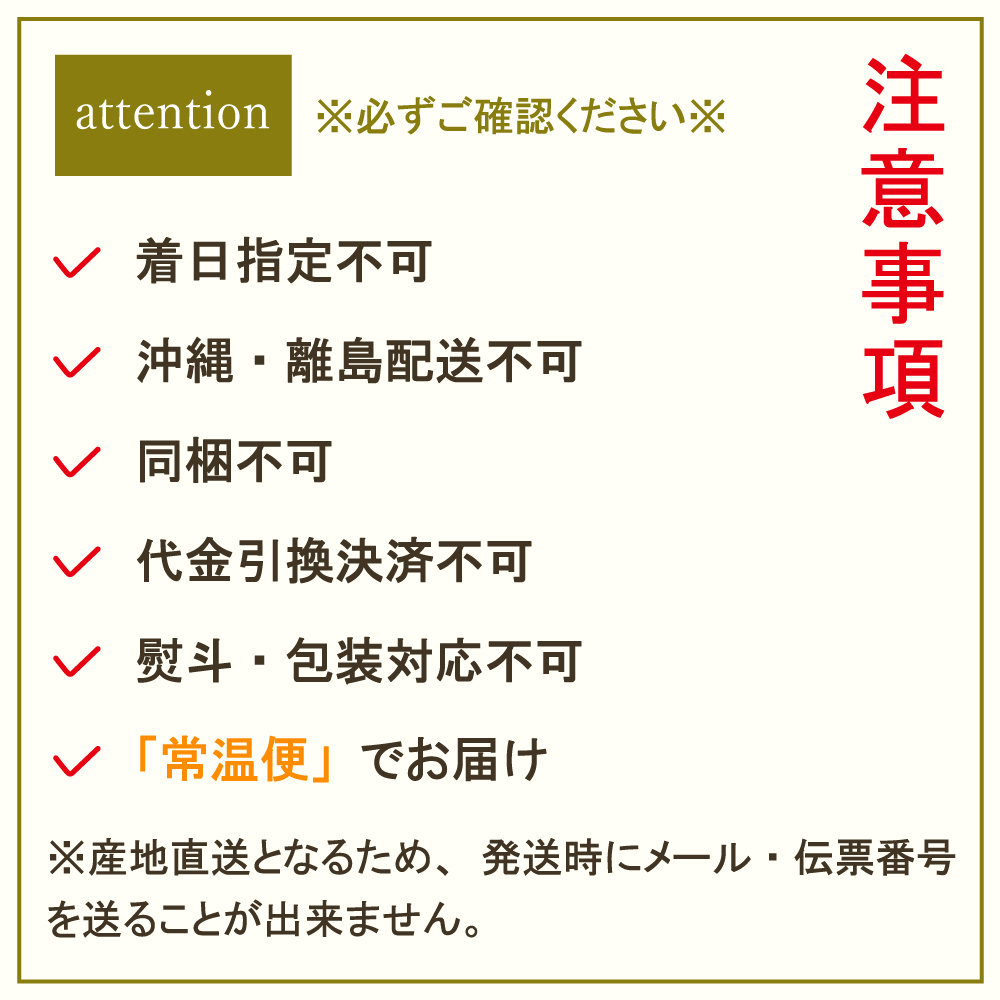 | 温度帯 | 「常温便」にてお届けいたします。 |