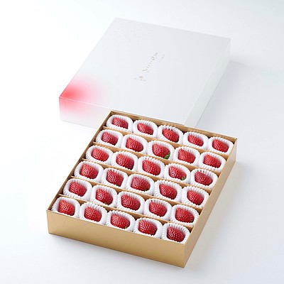 大きめの粒をずらりと並べ、おもてなしの気持ちが伝わる華麗パッケージ。「あまりん」は全国いちご選手権で受賞した<埼玉県オリジナル品種>です。