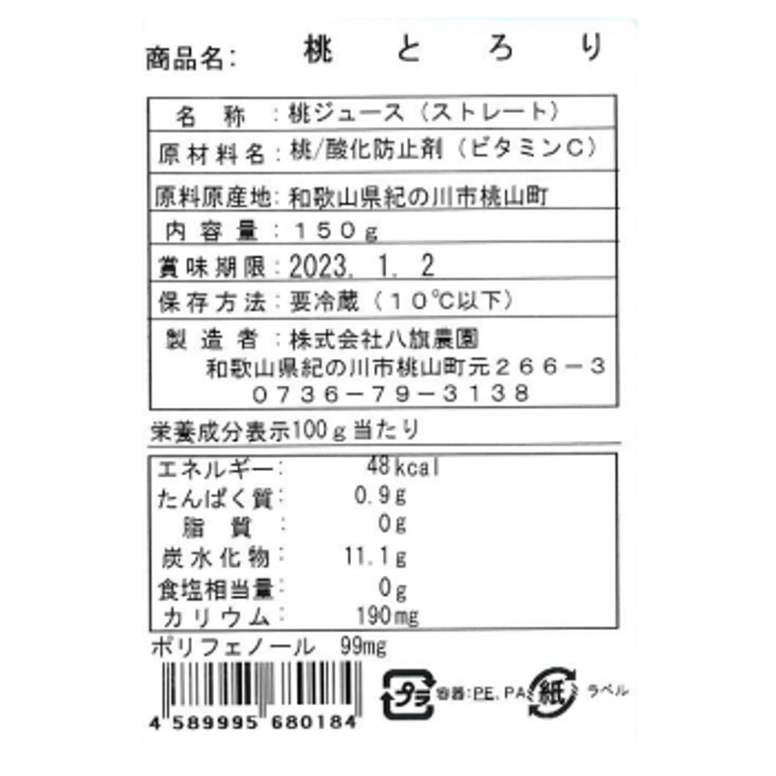 | 商品内容 | 八旗農園 桃とろりギフト 150g×6本 |