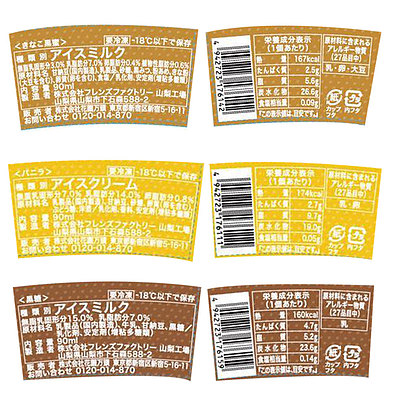 バニラ / 抹茶 / 小倉 / 黒糖 / きなこ黒蜜 / 各90ml×2個
