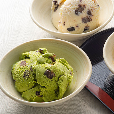 発売以来七十余年を数える花園万頭の代表銘菓「ぬれ甘なつと」。手間暇かけてじっくりと蜜漬けしてお造りしたぬれ甘なつとを風味豊かなアイスにトッピングしました。