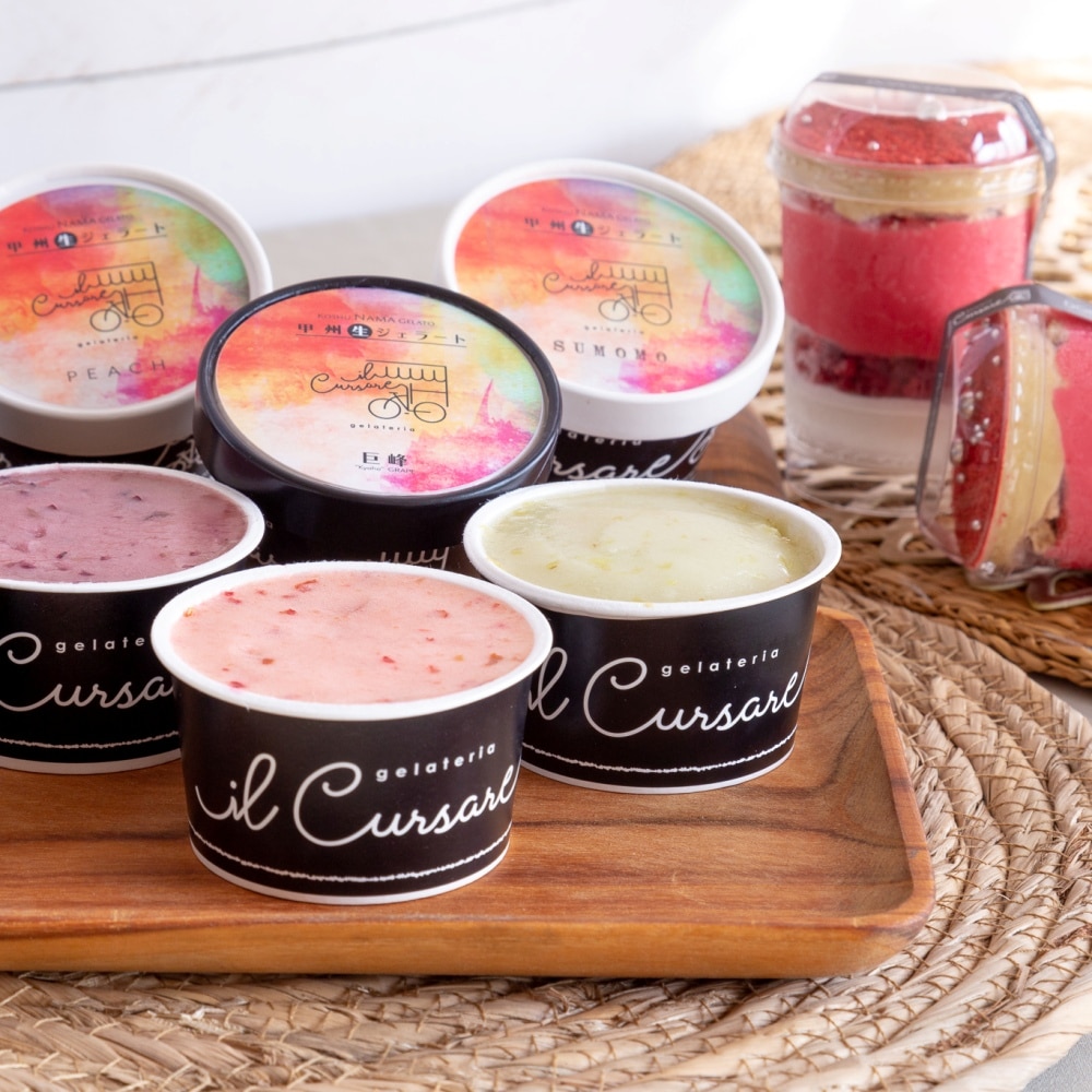 彩りも味わいも豊かな生ジェラートとジェラートパフェのアソートです。
