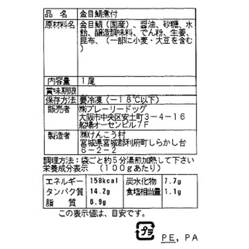 | 商品内容 | ・金目鯛煮付×4 |