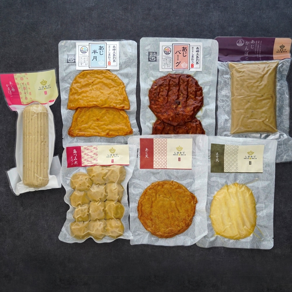 | 商品内容 | しまおう 和楽 7点セット あじ天、えそ天、島あじかんぼこ、島つみれイワシ、島あじ半月、島あじバーグ、あじ巻(白) |