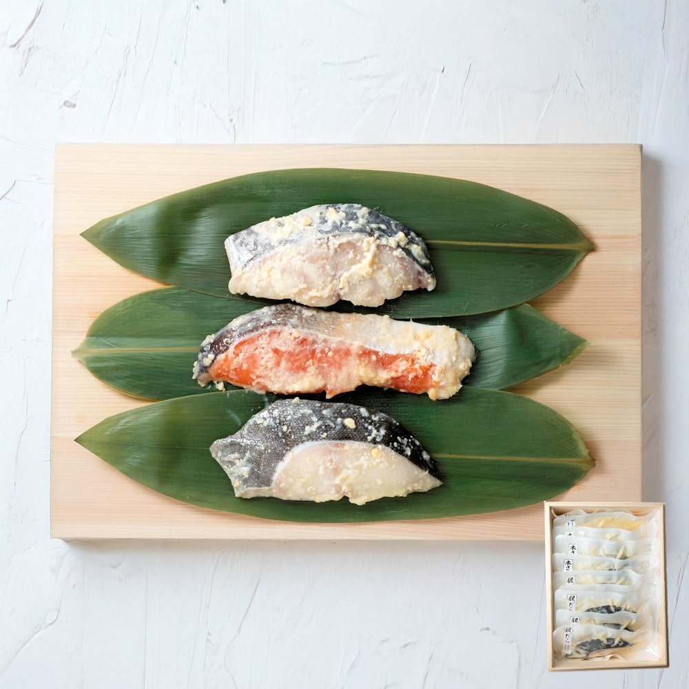 職人手造り西京漬けセット48時間丁寧に漬け込まれた特製の西京漬けです。銀だら5、さわら3、サーモントラウト2