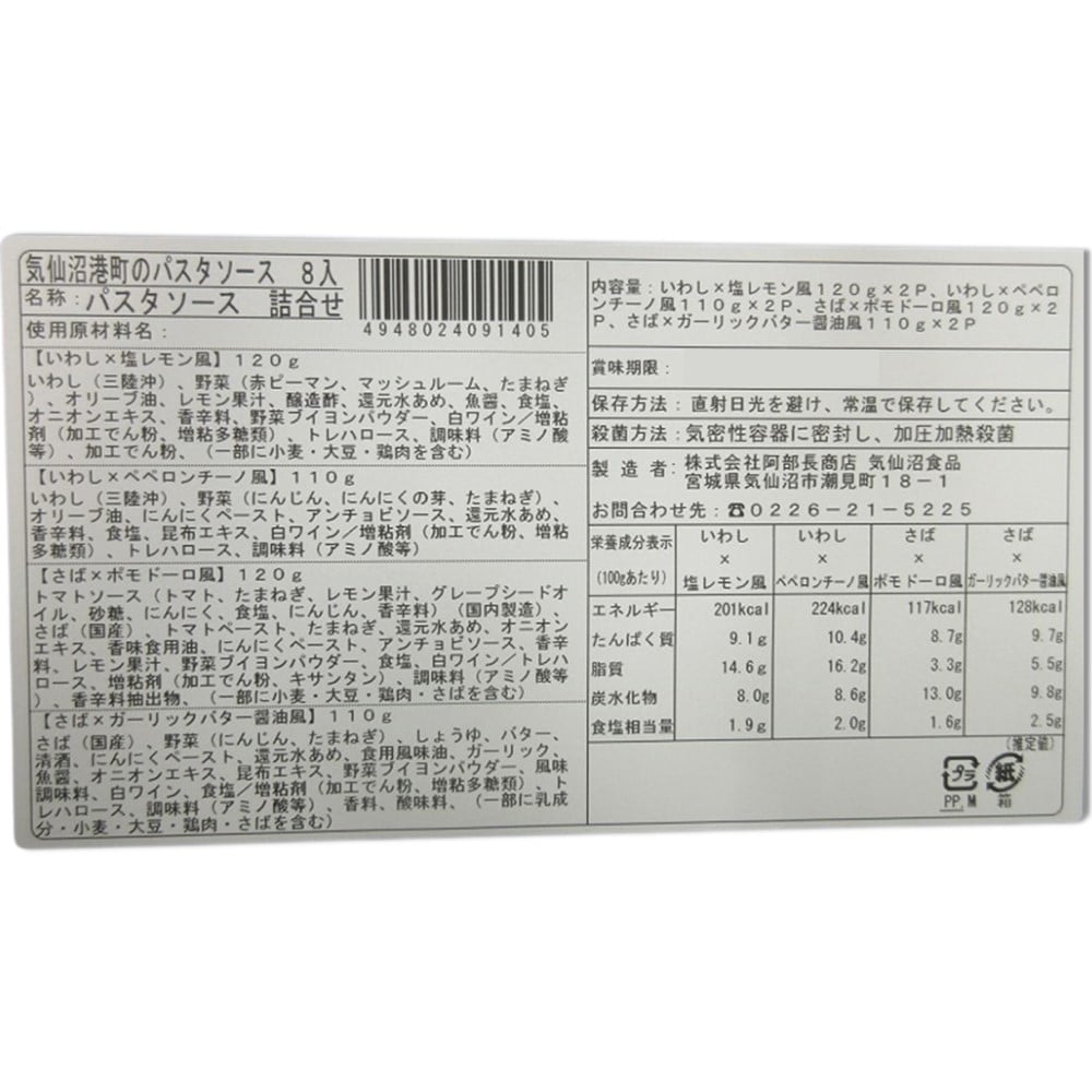 | 商品内容 | ・いわし×塩レモン風×2個 ・いわし×ペペロンチーノ風×2個 ・さば×ポモドーロ風×2個 ・さば×ガリバタ醤油風×2個 |