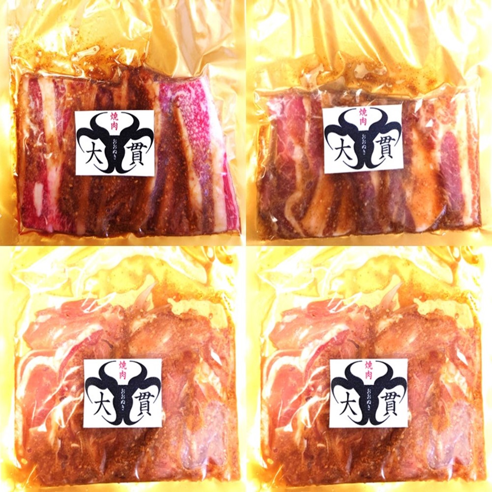 | 商品内容 | 焼肉大貫国産牛カルビ絶品ダレ焼肉130g 1P、焼肉大貫国産豚カルビ絶品ダレ焼肉130g 1P、焼肉大貫国産鶏もも絶品ダレ焼肉130g 2P |